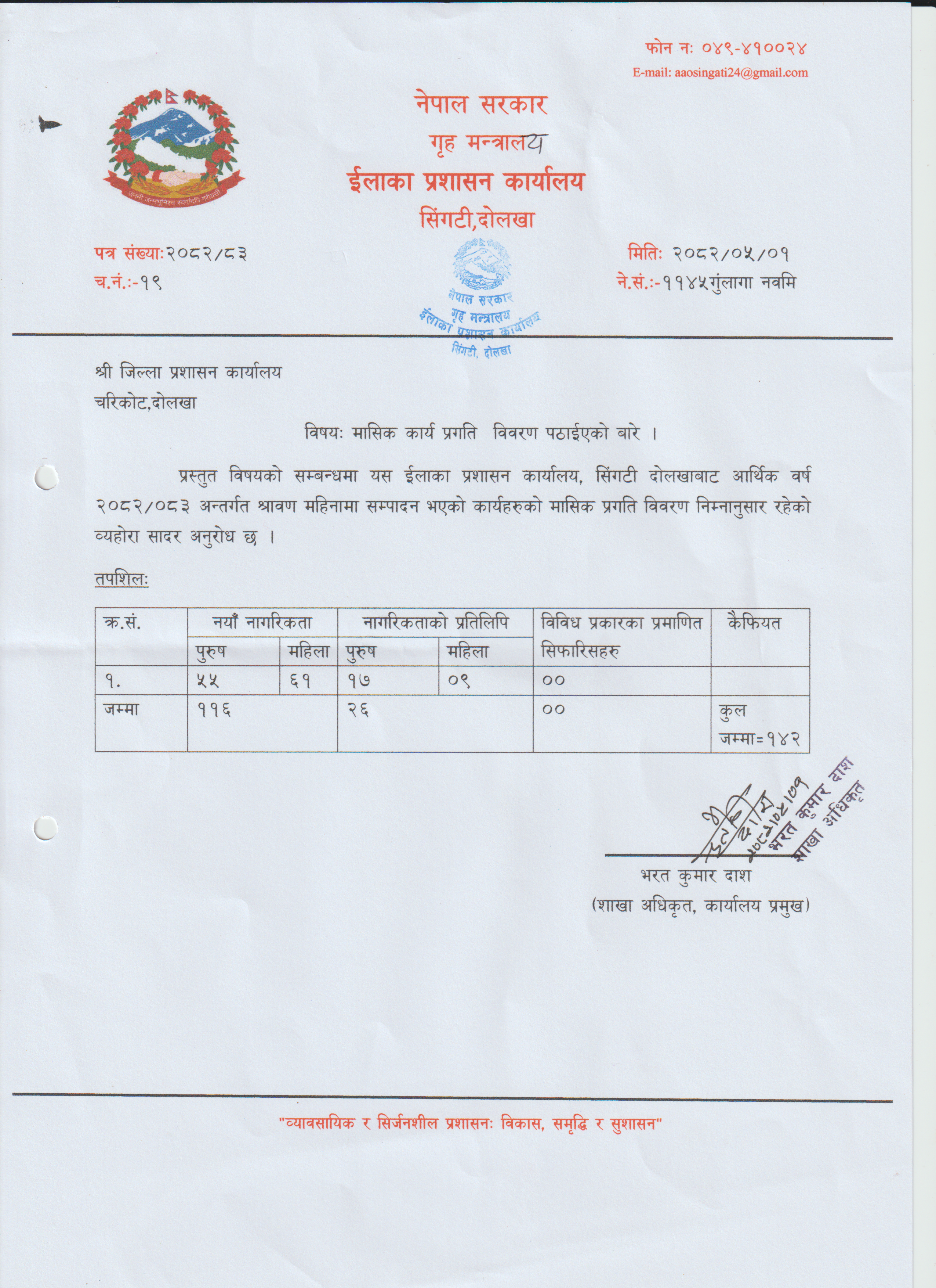 आ. व. २०८२/०८३ को श्रावण महिनाको मासिक प्रतिवेदन