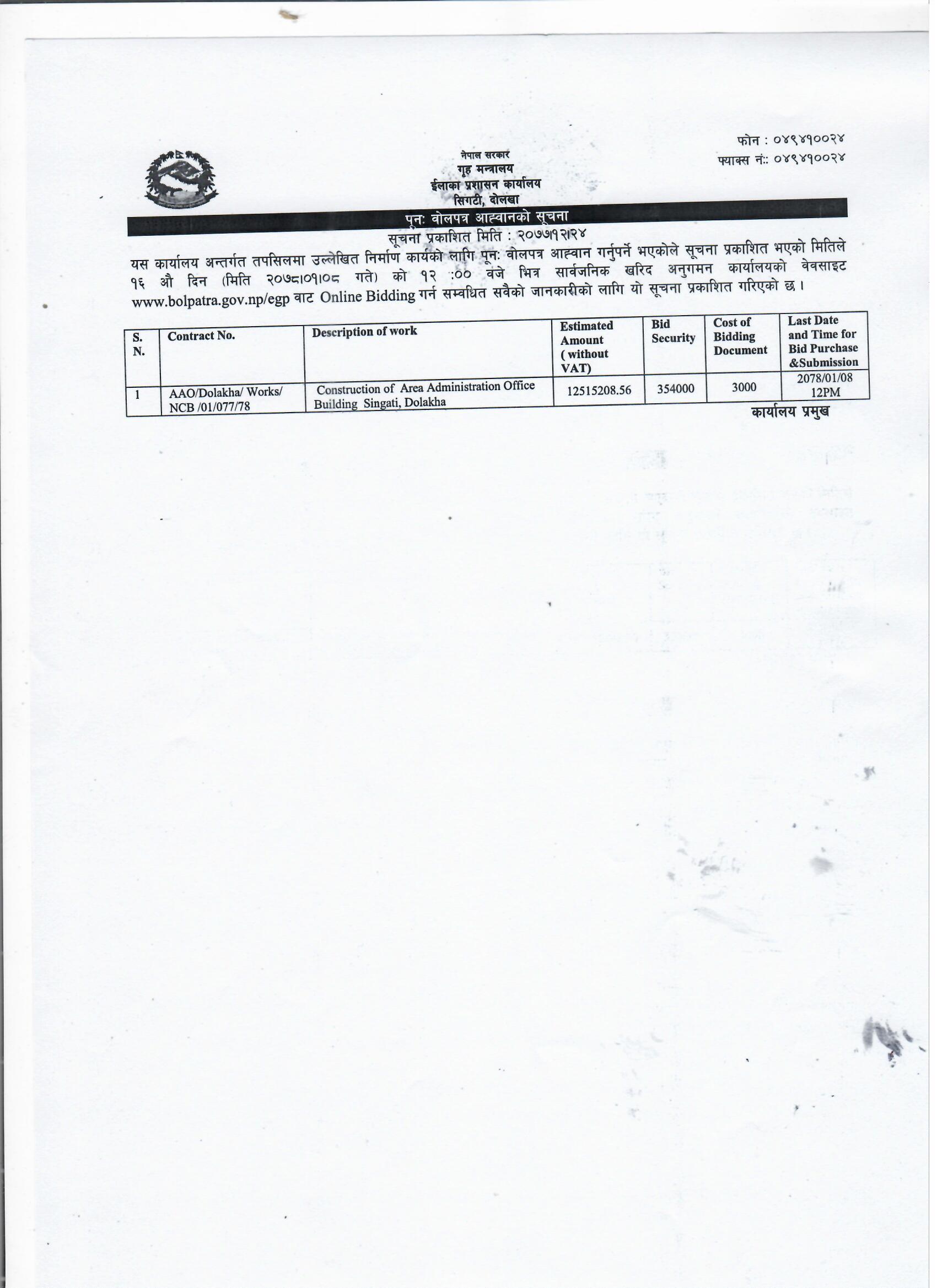 © सर्वाधिकार सुरक्षित इलाका प्रशासन कार्यालय , सिंगटीबजार, दोलखा