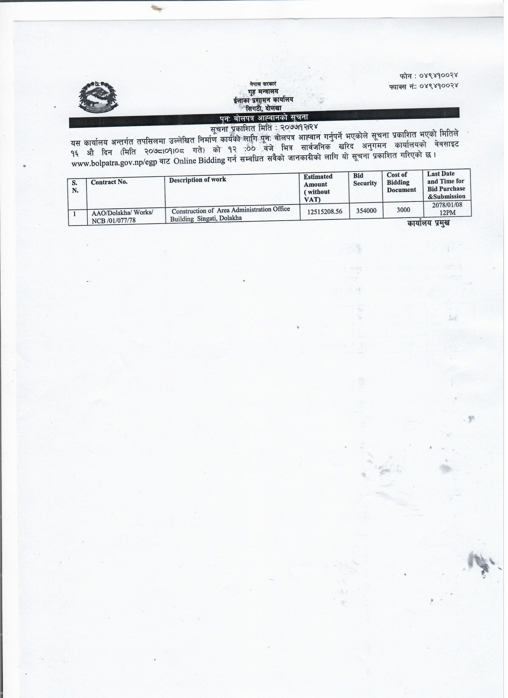 © सर्वाधिकार सुरक्षित इलाका प्रशासन कार्यालय , सिंगटीबजार, दोलखा